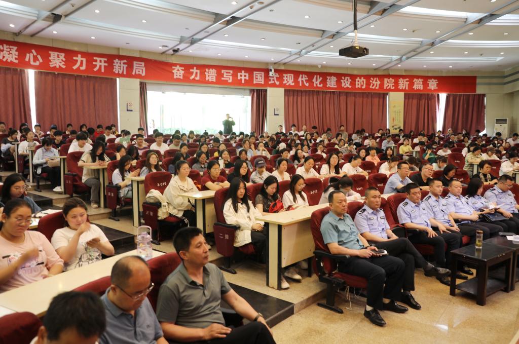 汾阳市公安局警官宋健、张智凯、王洪涛、裴晶、郭兆明分别就校园安全、反诈、禁毒、反邪教等内容,结合典型案例,应用通俗易懂的语言,深入浅出地进行了精彩的宣讲。学生工作部(处)部(处)长常明亮、保卫处处长李玉明代表学校对莅临学校宣讲的各位警官表示诚挚感谢,并表示安全工作任重道远,学校将进一步密切校地联系,强化警校联动,始终秉持“时时放心不下的工作态度、事事心中有底的工作担当”,把学校安全工作做得更好更扎实,确保校园安全稳定。