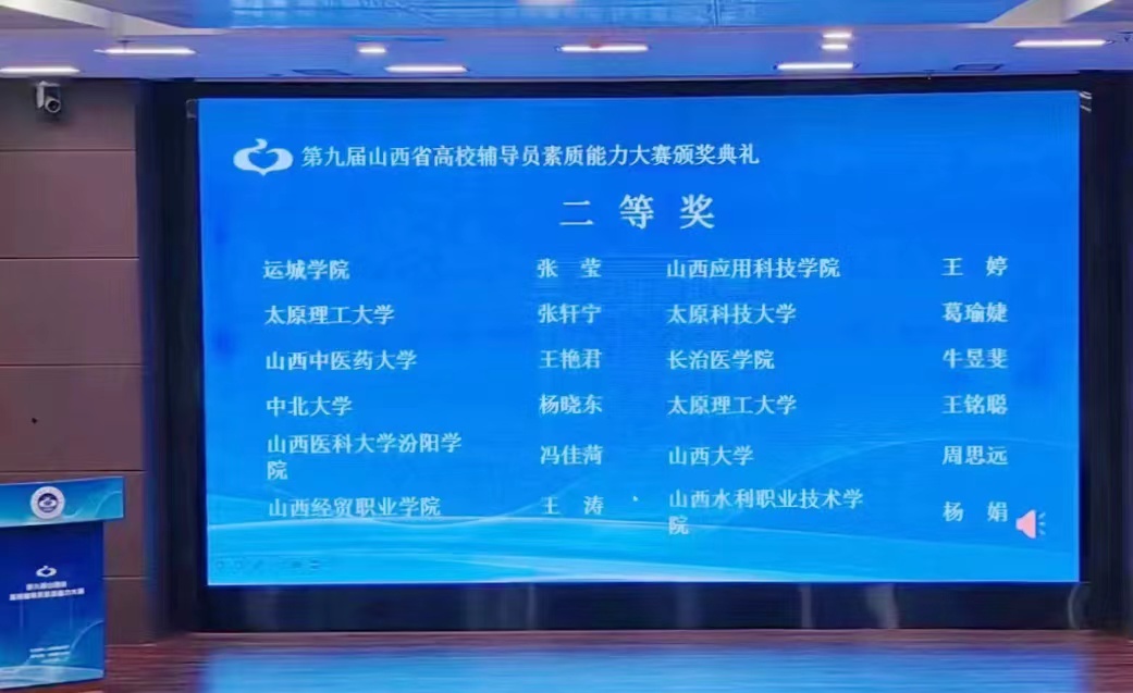 5月23日至25日,由山西省教育厅主办的第九届山西省高校辅导员素质能力大赛在太原理工大学举行,经过基础知识测试、案例研讨和谈心谈话三个环节的激烈角逐,必赢辅导员冯佳菏老师脱颖而出,荣获大赛二等奖。
