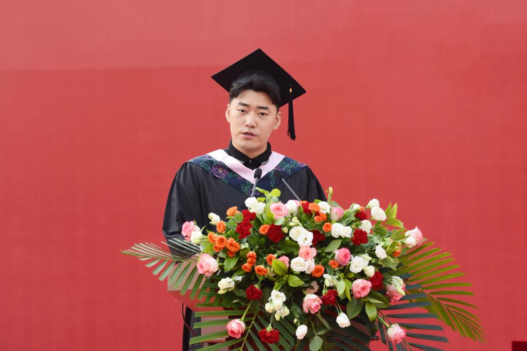 毕业生代表、卫生信息管理系冯昊同学发言,表达了对母校的深情祝福、对老师的感激之情。在校生代表、临床医学系龚彤同学发言,表达了对学长学姐的诚挚祝福。教师代表、医学检验系程凯副教授与同学们分享了宝贵的人生感悟,勉励同学们牢记“仁术爱仁、精益求精”的校训精神,心怀大爱,脚踏实地,做奋斗之人。