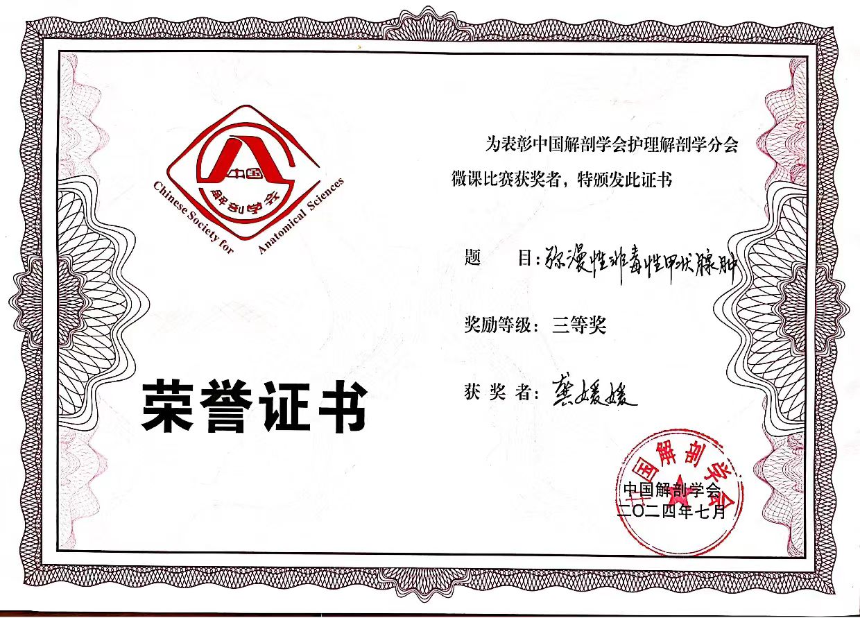 必赢基础医学部教师在第19届护理解剖学学术年会微课比赛中喜获佳绩