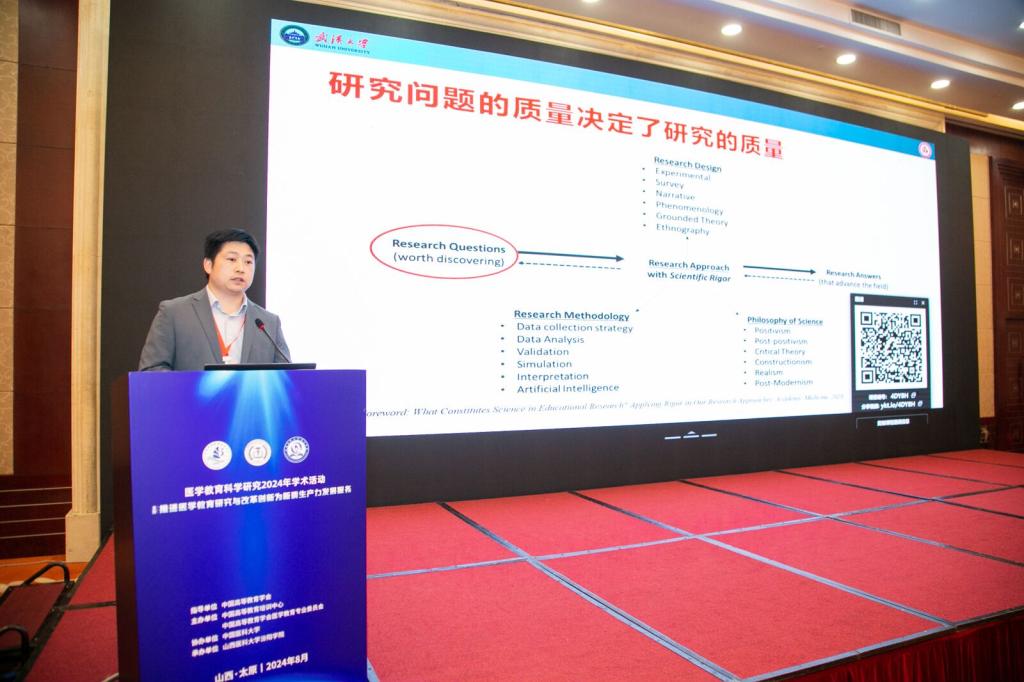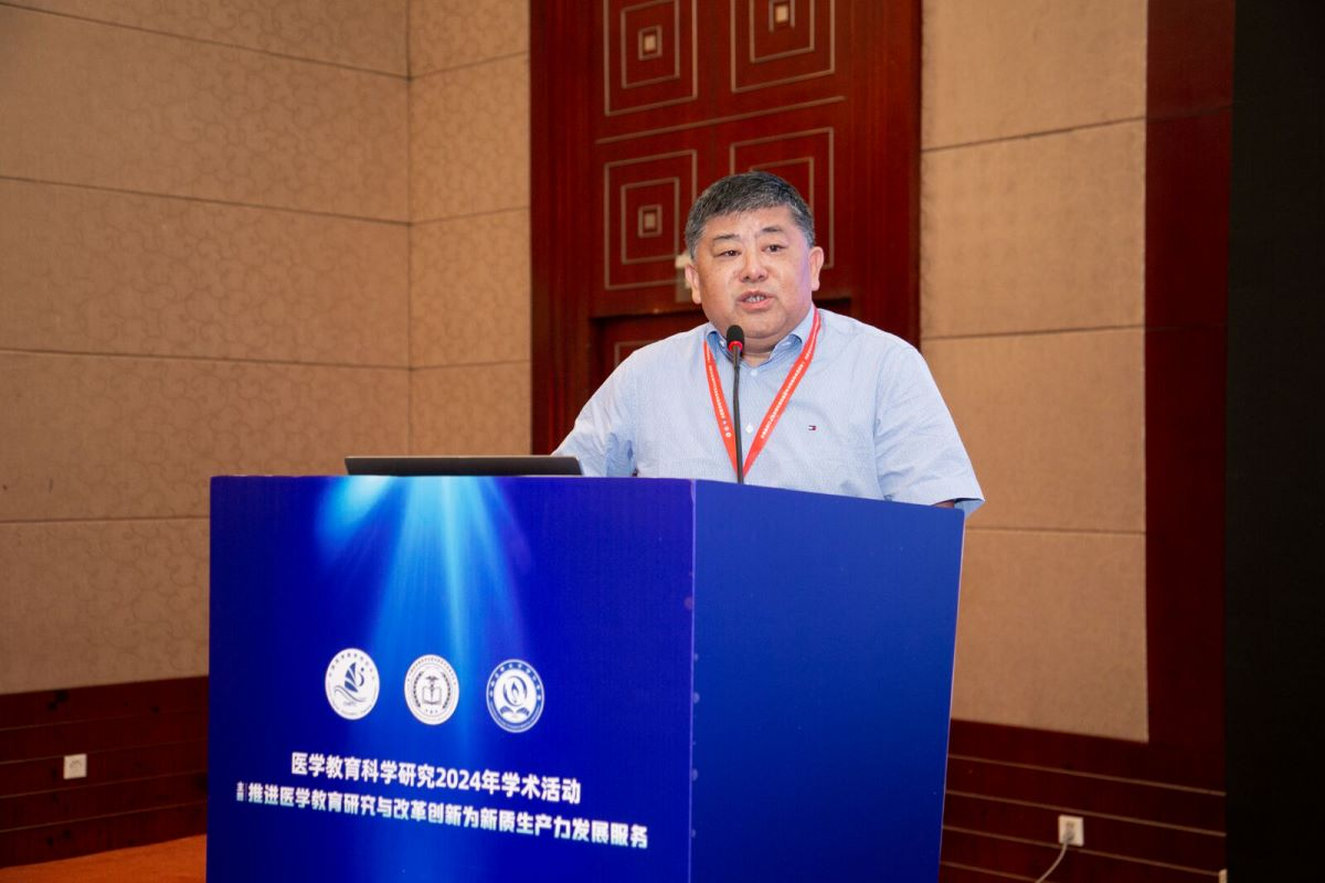 中国高教学会医学教育专业委员会常务副理事长、中华医学会医学教育分会主任委员、北京大学医学部副主任王维民教授在开幕式上致词。他指出,医学教育的科学研究关注医学教育的真问题,关注国家对医学教育的人才培养,在医学教育的改革和发展过程中发挥着越来越重要的作用。医学教育进入新时代,我们需要不断优化教学体系、教学内容、强化实践能力,运用人文关怀和前沿教育使医学教育更加贴近社会、贴近患者需求。我们需要打破学科的界限,以健康为中心,培养更具创新能力、适应未来医疗环境的医学专业人才,实现新时代医学教育的高质量发展,为新质生产力服务。