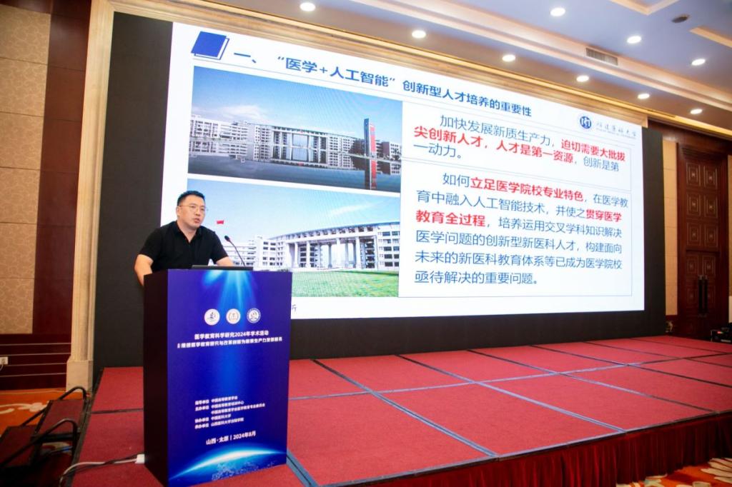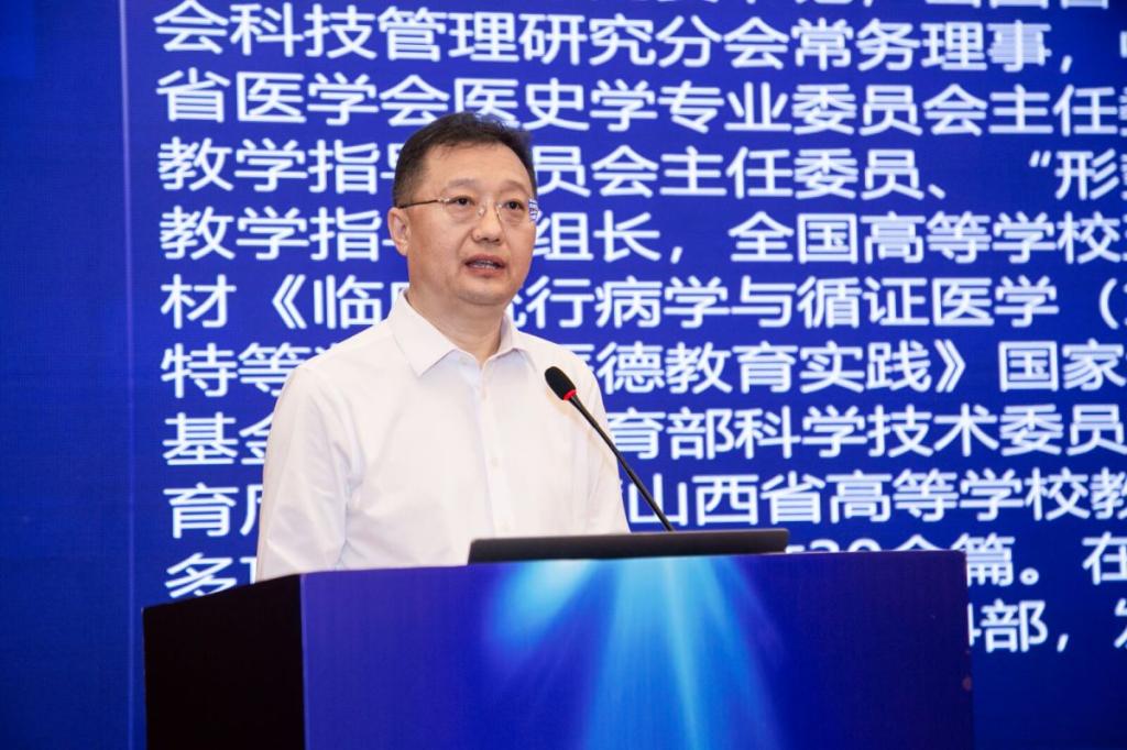 山西医科大学党委书记王军在开幕式上致词。他指出,当前健康中国建设全面推进,新科技革命和产业变革深入发展,数字化、信息化和人工智能新技术竞相涌现,为医学教育带来新的时代命题。面对新形势、新机遇和新挑战,我们当共同携手,对标中国式现代化的目标要求,立足经济社会发展全局,准确识变、科学求变、主动应变,更好认识把握医学教育规律,推动医学教育改革,加快推进医学教育创新发展,努力办好人民满意的医学教育,为教育强国、健康中国和中国式现代化建设作出新的更大贡献。