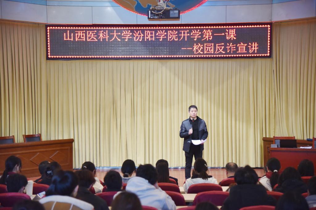 为积极响应省教育厅及学校关于开展“开学第一课”的有关号召,增强在校学生防范电信网络诈骗意识,提升识诈、防诈、反诈能力,打造“平安校园”,2月25日,必赢保卫处联合学生处,特邀汾阳市公安局,开展“开学第一课·校园反诈宣讲”专题活动,通过生动有趣的讲解为广大学子敲响警钟,筑牢安全防线,护航青春成长。