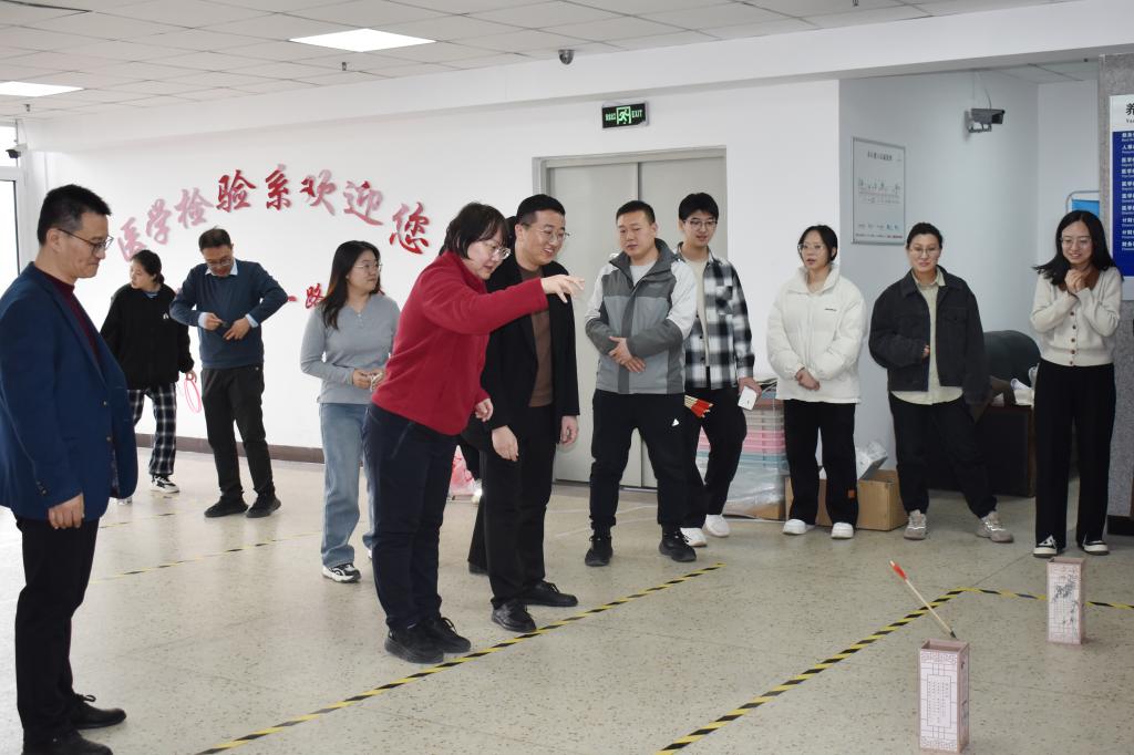 活动有套圈挑战、投壶竞技、跳绳比拼三个项目。套圈挑战设置了三个阶梯难度,教职工们纷纷使出浑身解数,摘取自己心仪的果实。投壶竞技仿造中国传统射礼游戏,教职工们全神贯注,“稳、准、轻”,力争竹箭稳稳入壶。跳绳比拼以组队形式开展,教职工们2-3人成组,奋力挥绳、你追我赶,每个人都尽全力跳出最好成绩。