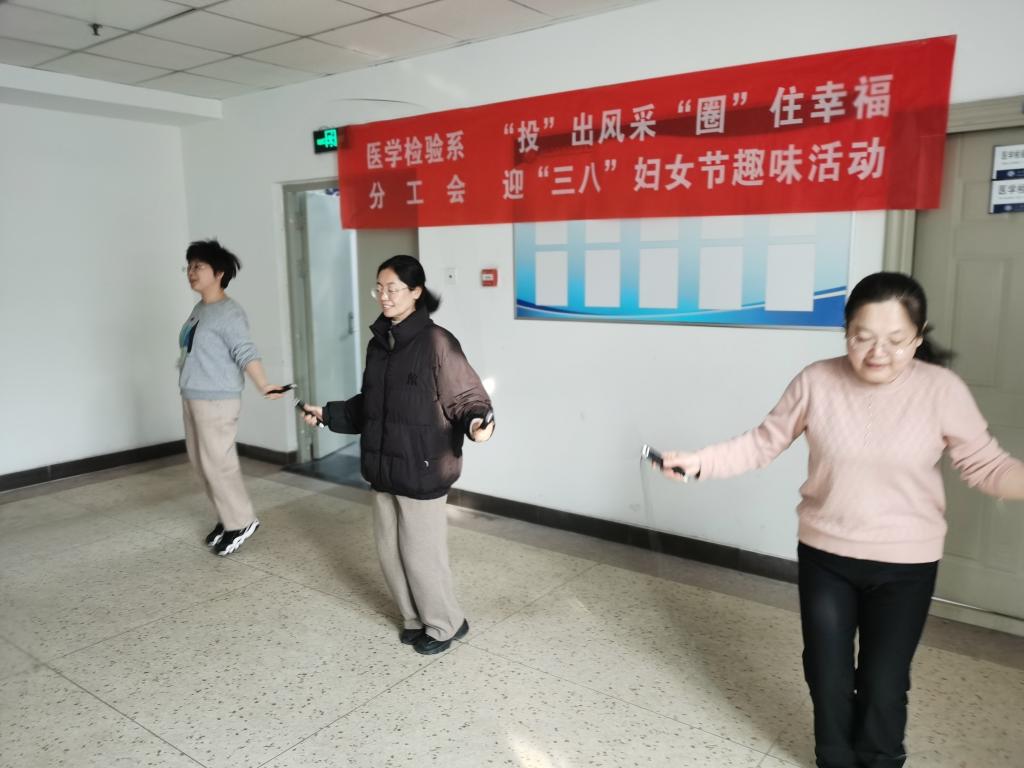 阳春三月,暖意融融。在第115个“三八”国际劳动妇女节来临之际,在校工会的指导下,3月5日下午,医学检验系分工会在养正楼六楼大厅举办了一场别开生面的“‘投’出风采 ‘圈’住幸福”“三八”国际劳动妇女节趣味竞赛活动,为全系女教职工带来了一场充满欢声笑语的节日盛宴。