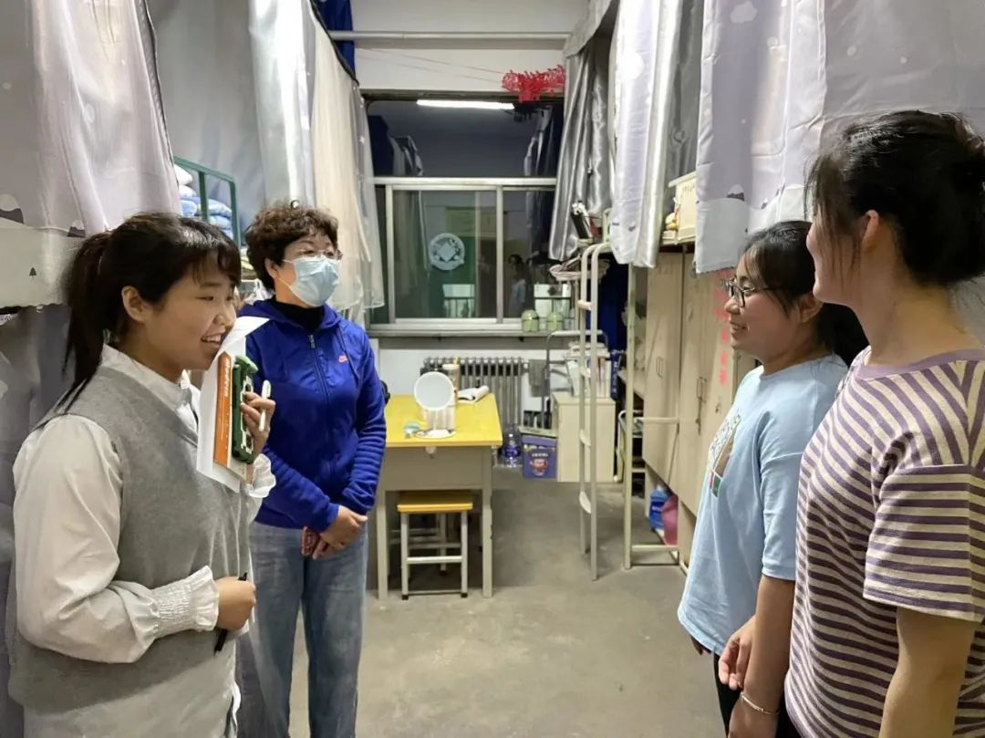张涌静老师来到二号公寓六层,首先询问了疫情防控三级包联网格化管理工作的落实情况,要求同学们要在班主任和辅导员老师的指导下,提高疫情防控的政治站位,严格遵守“五一”假期“非必要不外出”的要求,服从网格化属地管理,守好班级疫情防控阵地,维护正常的校园学习和生活秩序。