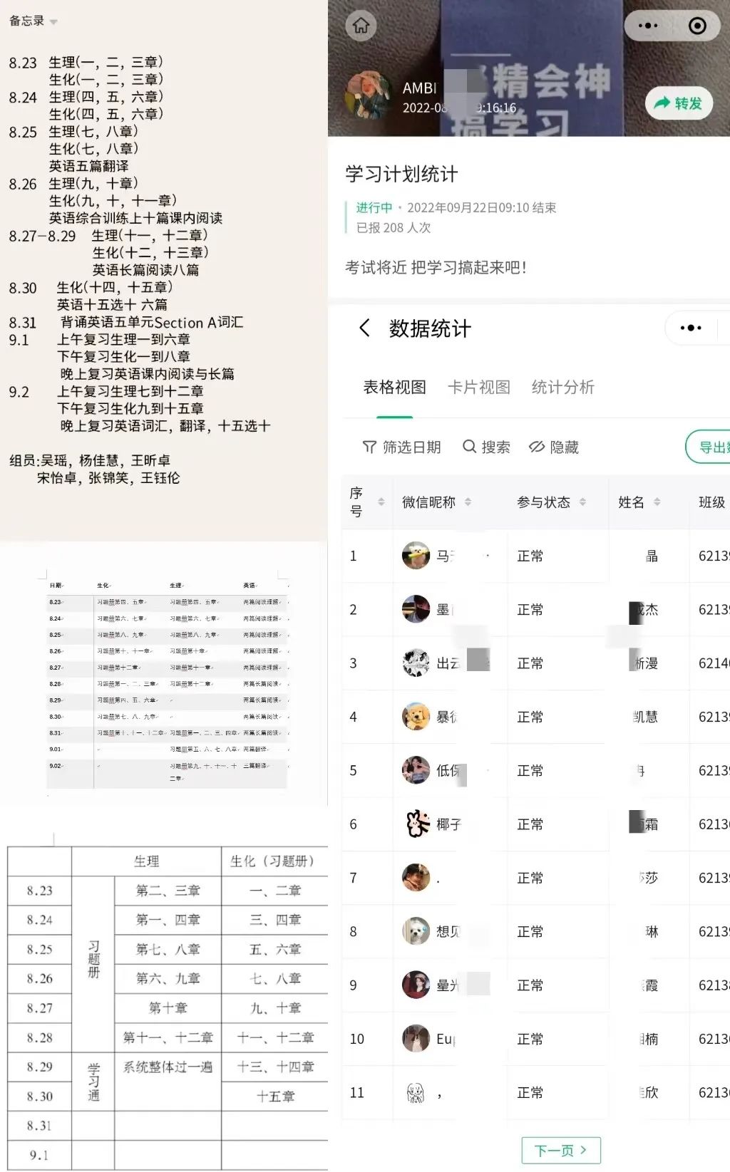 受新冠肺炎疫情的影响,学校做出延迟开学的决定。为了提高同学们在家的学习效率,合理安排学习时间,做到专心、静心学习,也为了更好地锻炼同学们的自律能力,指导同学们制定在家学习计划,实现自我控制,自我管理。护理学系62136-42班于8月21日起,在辅导员燕国华老师和学业导师陈文汉老师的指导下,开展了云端备考复习活动。副班长薛晨冉、学习委员魏书瑜、方蕊共同组织,各班级学习委员积极负责,全班同学沟通参与。
