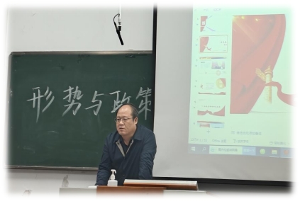 4月11日晚7点,校党委委员、纪委书记尹锡昊以《立志复兴伟业 踔厉奋发前行》为题,为护理学系62229-32班学生讲授《形势与政策》课程,辅导员张冠蓉参加。