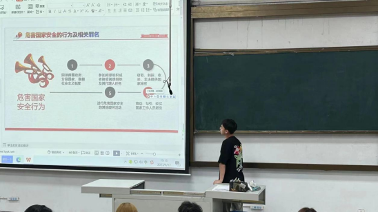 班会由宋佳俊和王凯鑫两位同学主持,班会围绕“何为国家安全”、“当前国际国内形势”、“危害国家安全的行为及相关罪名”、“如何维护国家安全”、“谁来保卫国家安全”五个方面展开,带领全体同学深入了解国家安全的重要内容。
