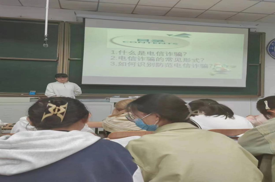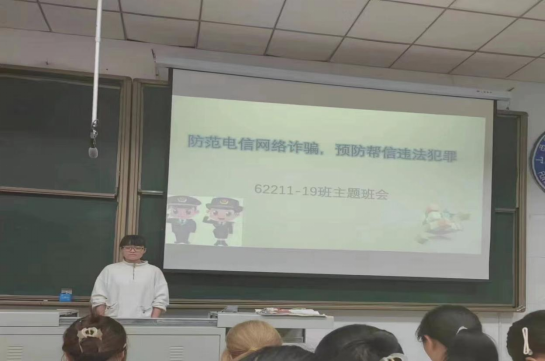 为进一步有效预防和遏制电信网络诈骗案件的发生,提高同学们自觉防范电信网络诈骗意识.在2023年5月22日19时,62211-19班于聚成楼三教开展了有关于“防范电信网络诈骗,预防帮信违法犯罪”的主题班会。本次班会由辅导员栗娜老师和学业导师王丽娟老师共同指导,梁淑芸同学主讲,全体同学参与其中。