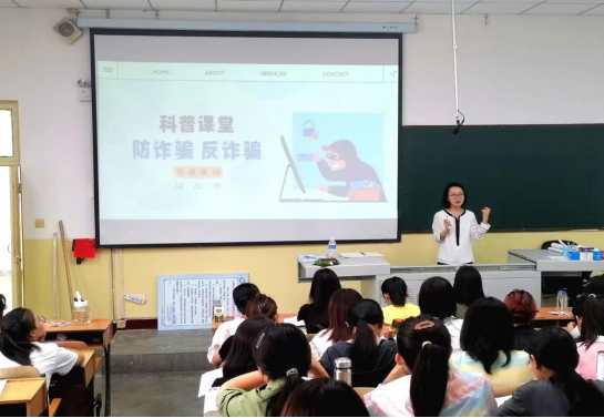 首先,陈老师给同学们讲述受骗的侥幸心理,通常受骗者自认为天上会掉馅饼,实则已经落入了被诈骗的圈套,这是缺乏安全防范意识的表现。紧接着她例举了几个真实案例,又提及暑假档电影《孤注一掷》,更加证实电信诈骗的危害,让同学们真切认识到诈骗的严重性和危害性。随后,陈老师就诈骗的几种类型、如何识诈骗、如何防诈骗等为同学们展开叙述。