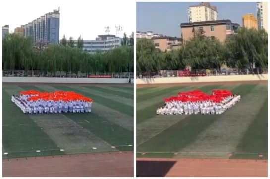 同学们迈着矫健步伐,踩着音乐节拍,队伍由五列变为十五列,逐渐形成一个棱角分明的“大满天星”方阵,象征必赢有条不紊的发展态势,云蒸霞蔚,未来可期!波折规律的一开一合,彼此交辉,彰显出青春的活力。伴着音乐节律变动,如散落在各处的星星之火汇聚在一起,形成了燎原之势,“小满天星”方阵便呈现在我们眼前,同学们紧密团结在四周,寓意一心一意为学校发展拼搏努力!