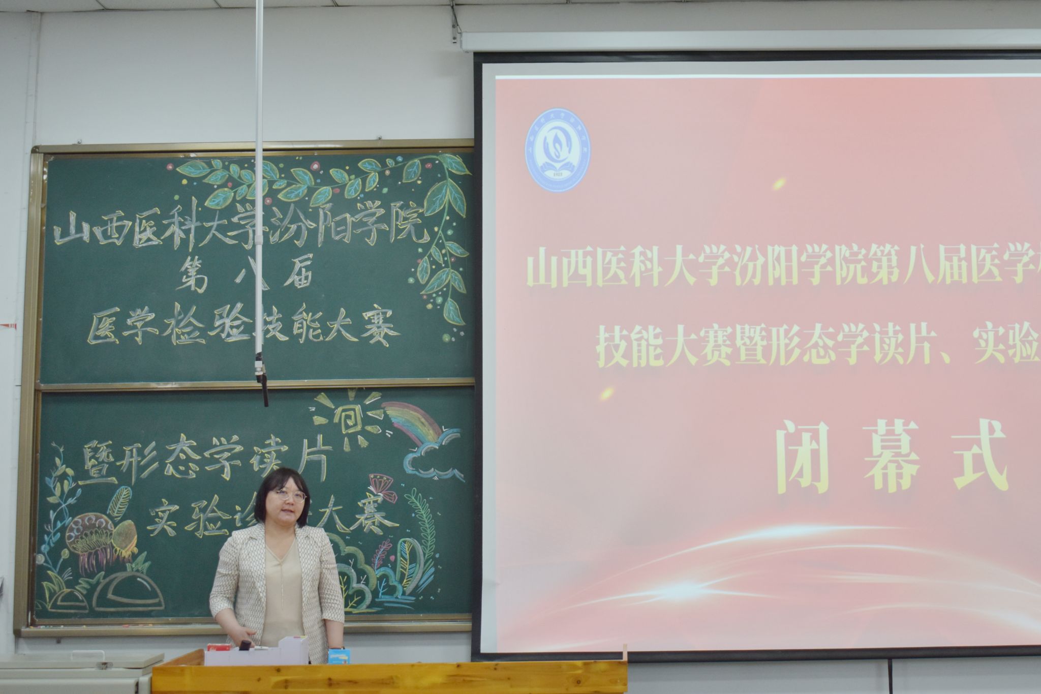 最后,医学检验系主任张晓延总结讲话。她对全体师生和工作人员赛前赛中的辛勤付出表示衷心的感谢。她指出,通过比赛同学们的专业素养、技能水平和综合素质得到了显著提升,并且在历练中获得了成长。同时,老师们也通过大赛获得了教学改革的新思路。她勉励师生在今后的学习和工作中要发扬比赛中表现出的拼搏精神和严谨作风,推动医学检验系教育教学工作跨上新的更高的台阶。