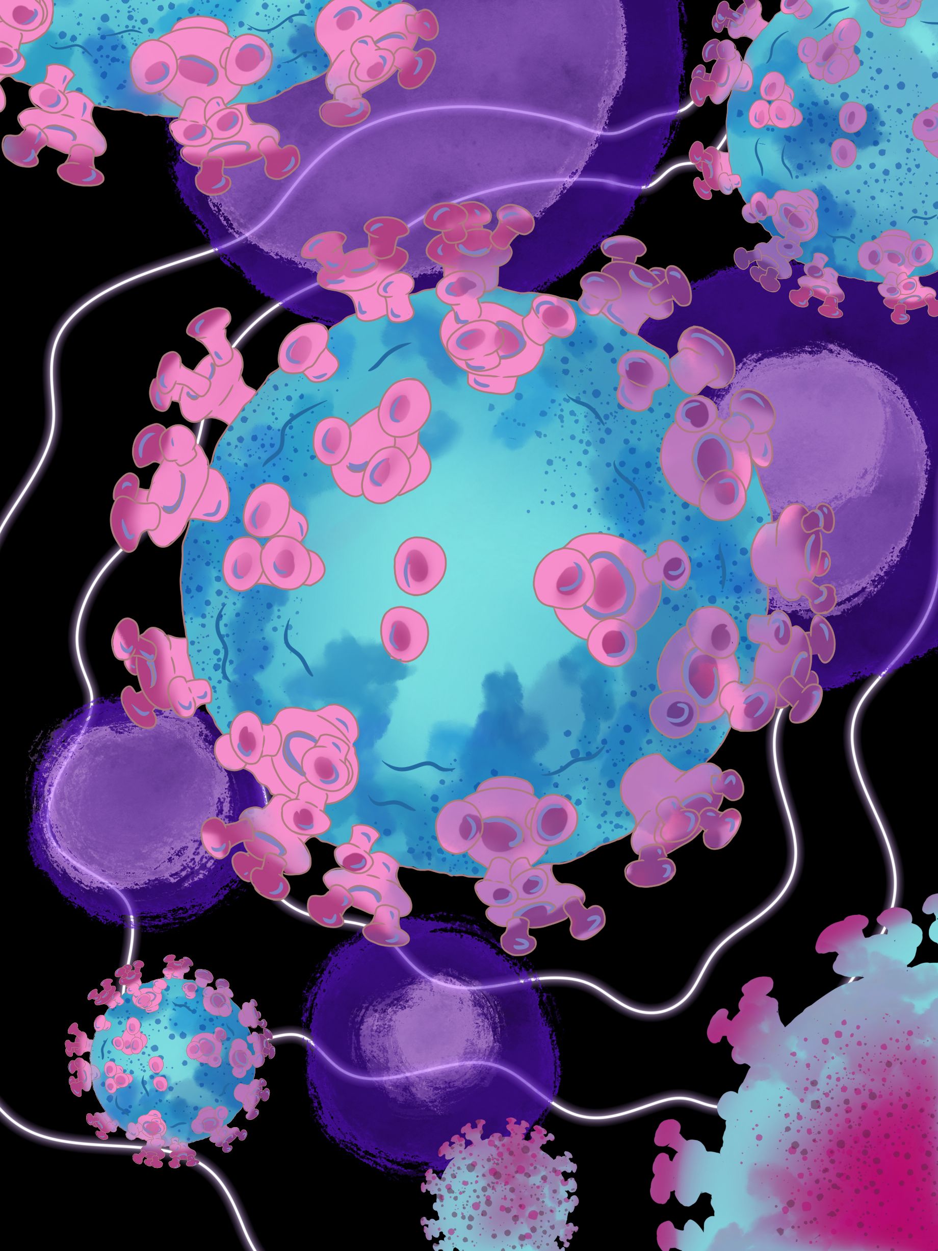 在为期近一个月的作品征集期内,同学们热情高涨,积极创作。参赛作品类型丰富多样,作品既有纸上手绘的匠心独运,也有电脑机绘的科技美感,52份作品不仅体现了参赛者对病原生物形态学知识的扎实掌握,更展现了他们丰富的想象力、独特的艺术视角和精益求精的创作态度。