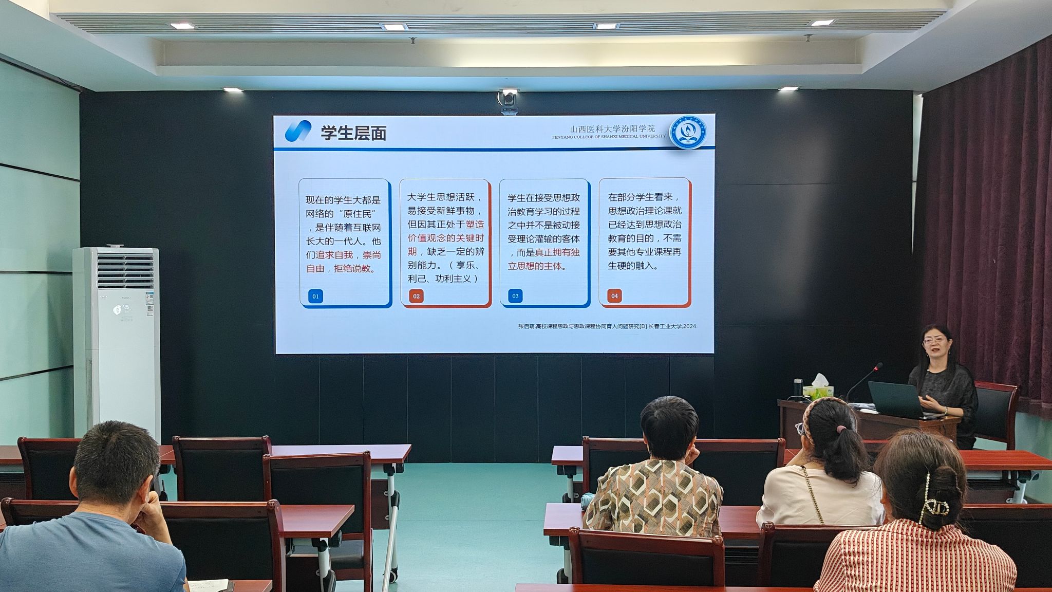 李红梅主任以“浅谈课程思政在教学中的应用”为题,凭借深厚的学术造诣和丰富的教学经验,围绕“为什么进行课程思政、怎么样进行课程思政、课程思政活动赛事与奖励”三大核心板块展开精彩讲解。结合当下教育发展趋势与人才培养需求,深刻剖析了课程思政对于落实立德树人根本任务的重要意义。同时,李红梅主任分享了多个护理学课程思政的优秀案例,从教学目标设计、教学内容挖掘,到教学方法创新,细致入微地讲解了将思政元素有机融入专业课程的具体策略。此外,她还通过解读顶层设计文件、解析实施纲要路径、分享专项培训案例、展示项目资助成效及讲述赛事孵化成果,多措并举提升教师的思政育人意识和教学实践能力,为与会教师提供了课程思政创新的理论视角与实践路径。