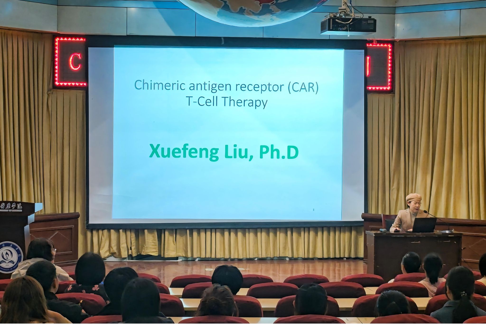 讲座中,刘雪丰博士从科学原理入手,强调明确研究目标和把握领域前沿动态的重要性。刘博士详述了CAR T细胞作用原理、分类、GMP生产制作过程、质量监控以及应用案例。在互动环节,师生们积极与刘博士进行学术交流,刘博士结合自身研究数据,从CAR T细胞的检测项目和指标以及免疫细胞的组成等方面给出详细解答,并介绍了目前国际上的最新研究方向。
