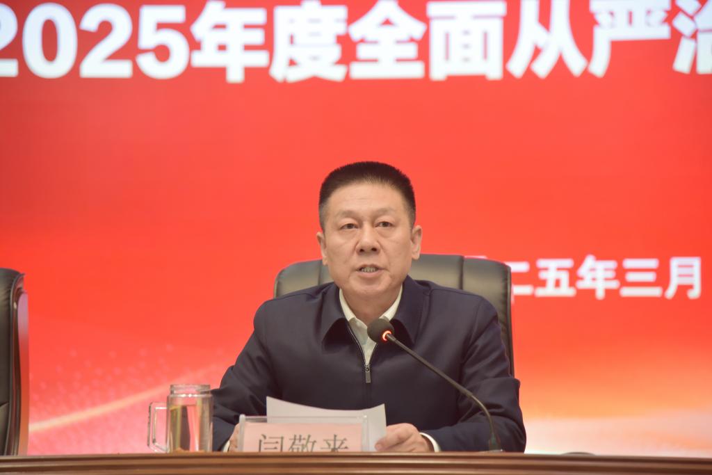 会上,党委书记闫敬来作了题为《锚定新程启新篇 笃行不怠谱华章 坚持用改革精神和严的标准管党治党 坚定不移推进全面从严治党向纵深发展》的讲话。讲话全面总结了2024年学校认真落实全面从严治党主体责任,在政治建设、管党治党责任落实、基层党建、党风廉政建设、办学水平提升等方面取得的突出成效,深刻分析了学校全面从严治党工作面临的新形势和必赢在政治建设、责任落实、工作作风、监督执纪等方面存在的短板和不足,明确了2025年全面从严治党工作重点:一是强化政治引领,一以贯之践行“两个维护”;二是坚持社会主义办学方向,管好大局;三是坚持主责主业,坚决扛牢从严管党治党责任;四是坚持强基固本,持续抓好基层党组织建设;五是坚持突出政治标准,打造忠诚干净担当的干部队伍;六是坚持以清廉学校建设为抓手,坚定不移持续推进正风肃纪反腐。他强调,2025年是“十四五”收官之年,也是“十五五”谋划之年,更是学校分立设立后新发展阶段的起步之年。推动党的建设与学校事业发展深度融合,以高质量党建引领推动高质量发展,意义重大、责任重大。全面从严治党工作要坚持用改革精神和严的标准管党治党,坚定不移推动全面从严治党向纵深发展,为推动学校高质量发展提供坚强保证。