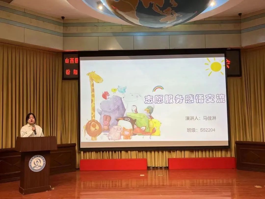 陈陆寒骧同学分享了她为运动员和教练员做后勤保障工作,去“来小驿”为民众服务,跟随老师查房的经历,还介绍了在手术室的所见所闻。在她看来,志愿活动能让医学生们在生活的点点滴滴中,埋下一颗爱与奉献的种子。