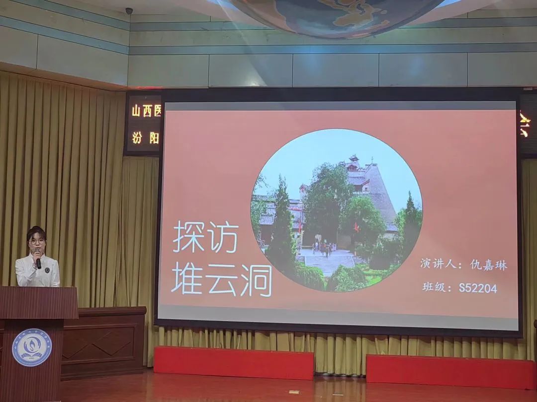 仇嘉琳同学以游者的角度带领我们探访堆云洞,领略自然之美,古建筑之美。登高望远,追古抚今,告诉我们要以实际行动为中华民族的伟大复兴做出我们应有的贡献。