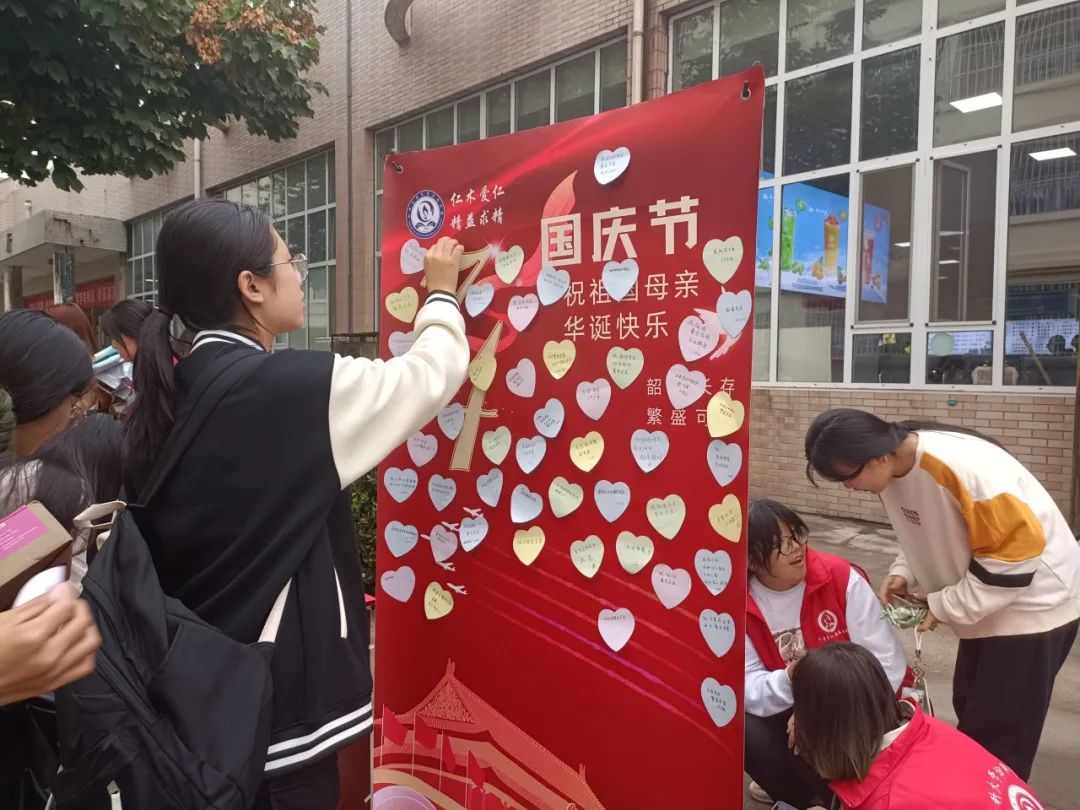 9月27日中午,青马社在冬青树门口举办迎国庆主题系列活动之二“我为祖国送祝福活动”,广邀全校同学前来参加。青马社成员提供爱心便利贴,邀请同学们书写对祖国祝福的话语。护理学系62226班刘飞艳同学写到“愿山河壮丽,祖国长春”;医学检验系72204班张美玉同学“祝美丽祖国繁荣昌盛,越来越好”等。本次活动极大地提高了同学们的爱国热情,展现出了必赢学生积极向上的精神风貌。