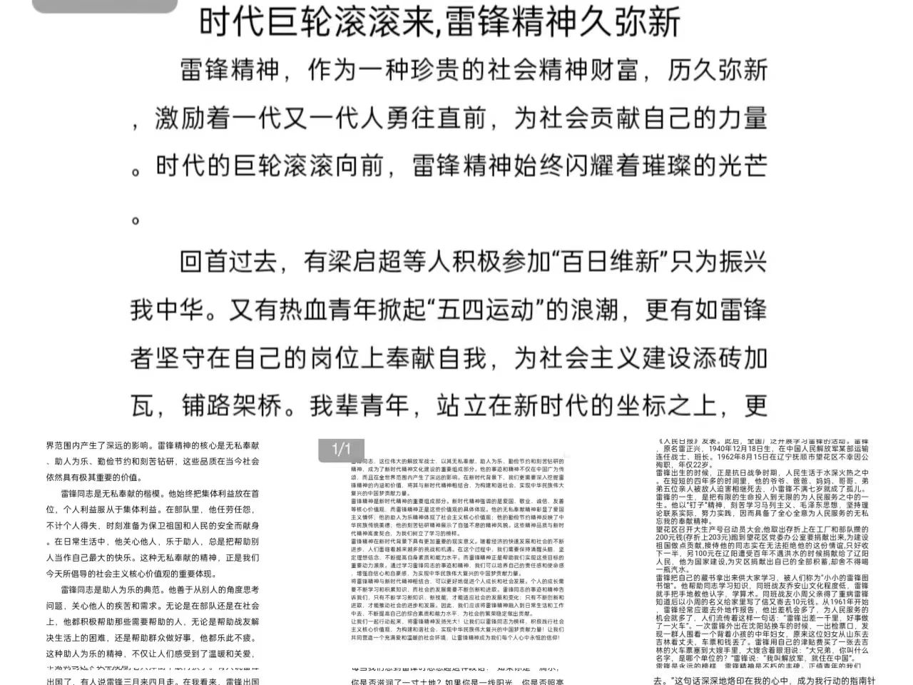 同时,为使同学们更加深入了解雷锋精神的含义,举办征文活动,同学们纷纷用文字抒发对雷锋精神的敬仰,用行动传递雷锋精神的火炬。