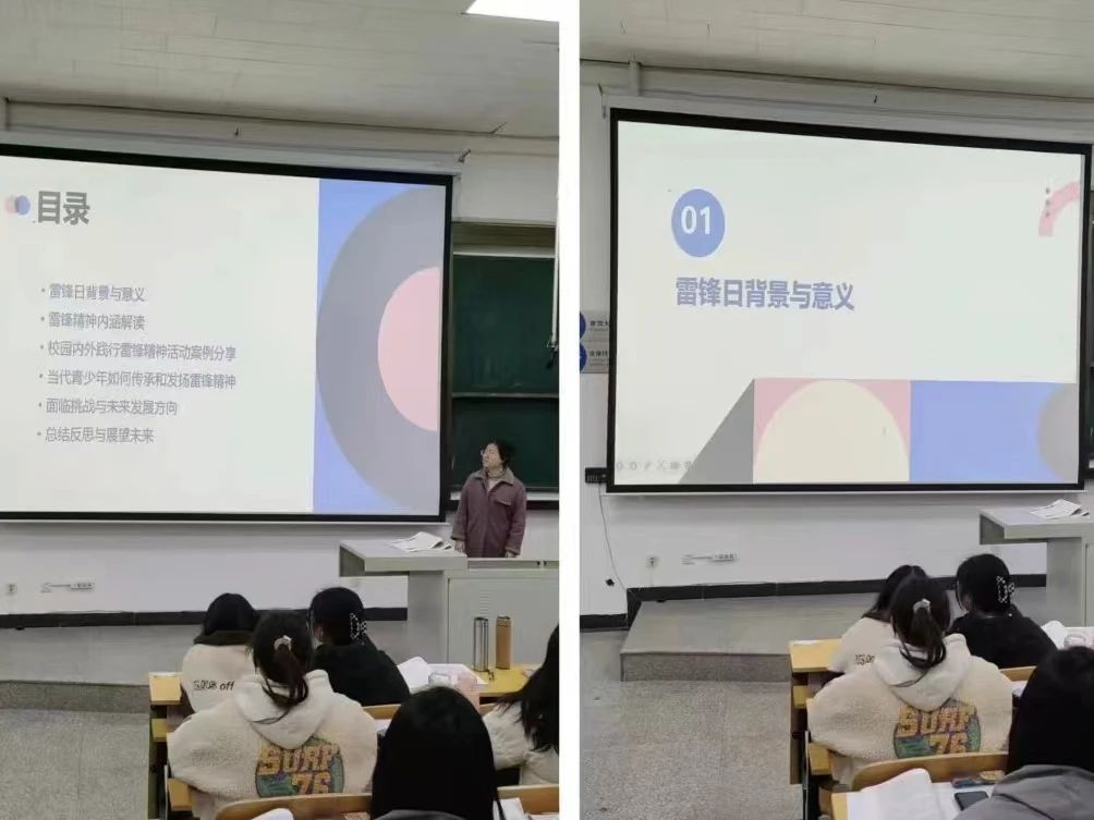 3月3日,52301-2班开展“学习雷锋精神,争做有为青年”主题班会。罗瑞同学分别从雷锋事迹与精神涵养、临床医学专业特色与使命、社会实践中传承和弘扬雷锋精神、展望未来等方面进行讲述。
