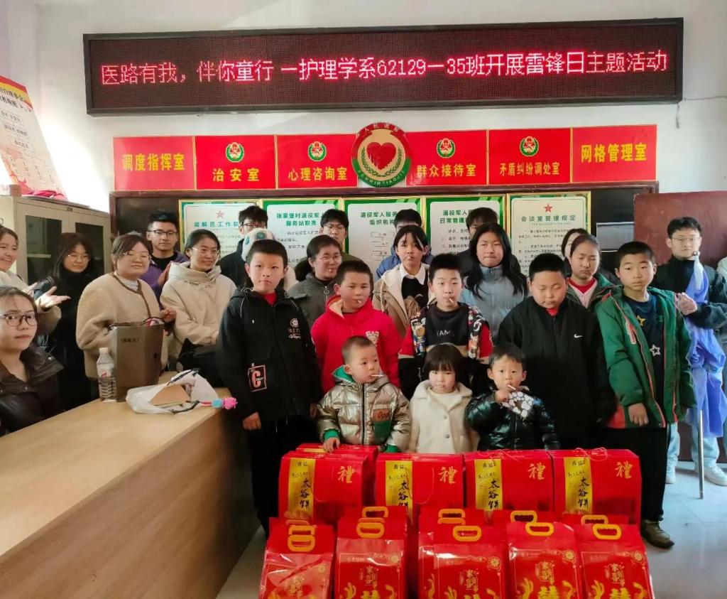 为传承和弘扬雷锋精神,传承中华民族尊老爱幼的优良传统,同学们自发组织了爱心捐助活动,为张家堡村的13名留守儿童送去春日温情。同学们根据不同学龄段,将精心挑选的文具图书和慰问物品分发给孩子们,并陪伴孩子们一起做手工、玩游戏,重温《雷锋日记》,将传递着祝福与希望的爱心明信片送给孩子们,活动现场充满欢声笑语,孩子们脸上洋溢着开心的笑容,为初春增添浓浓暖意。