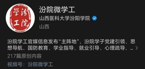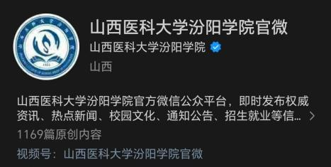 汾院团团视频号:发布各类视频内容,包括校园新闻、师生风采等,以直观、生动的形式展示学校的风采,树立学校良好形象,同时也记录了各个活动的举办过程,展现同学们在活动中的精彩表现,为学校保留珍贵的回忆。