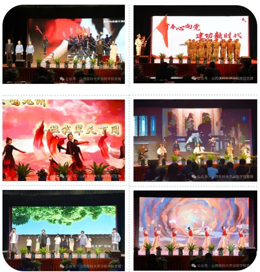 广大青年学子以饱满的热情共迎自己的节日,进行了精彩纷呈的文艺汇演。同学们表演了开场舞《少年》、歌曲《追梦赤子心》、舞蹈《九州同》、民乐合奏《霍元甲》、朗诵《奋斗》、古风舞蹈《水龙吟》《声声慢》、团体舞《光荣使命》、情景剧《破晓》、民族舞《牵丝戏》《上铃鼓》《太极》、集体舞《我的未来式》,表达了汾院青年的爱国情怀、文化自信和责任担当。