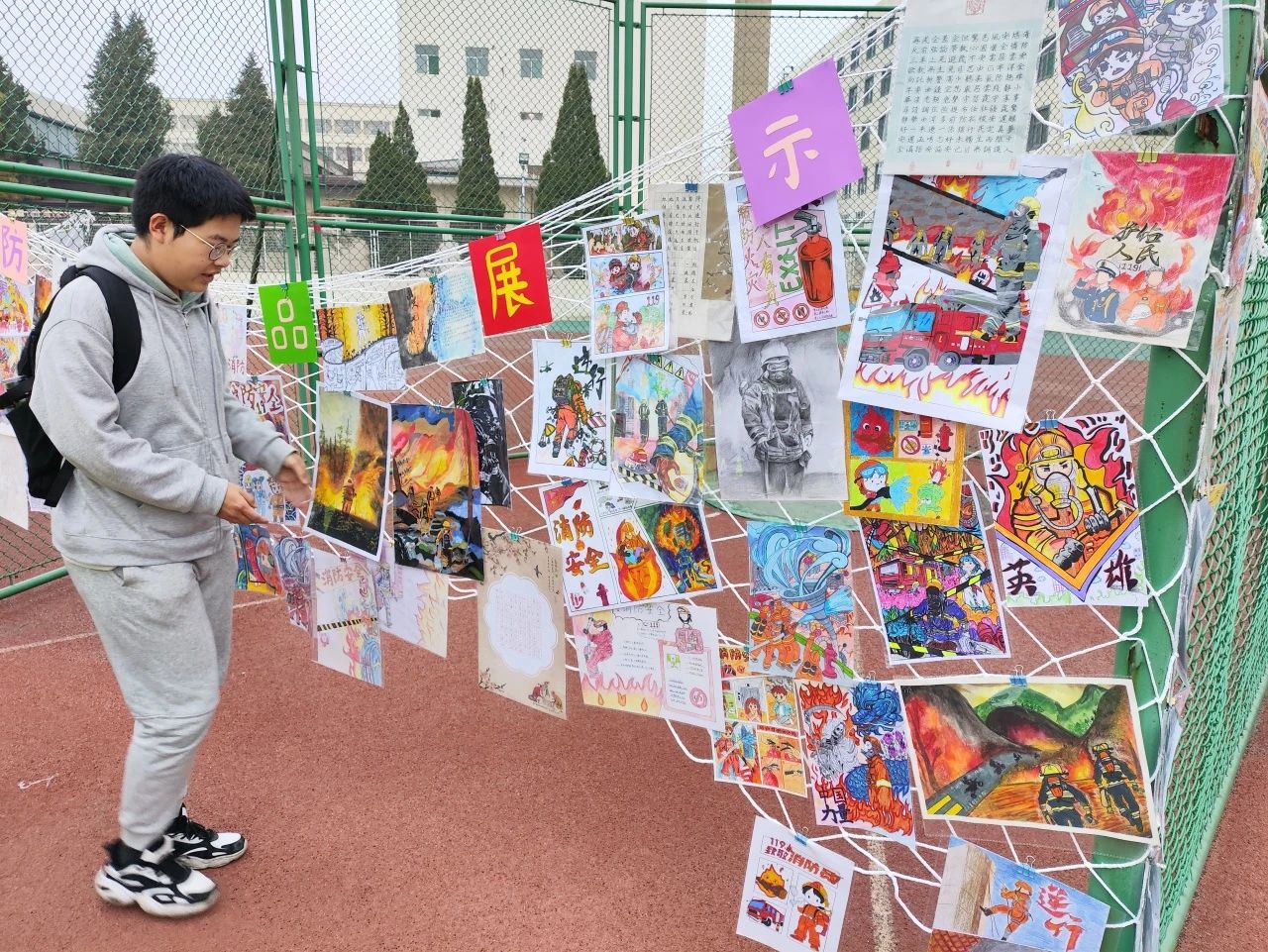 11月10日,消防主题作品在三号公寓楼前进行了集中展示,众多创意主题作品在道路两旁形成一道靓丽的风景线,吸引了众多同学驻足观看,大家纷纷与消防主题作品拍照打卡,自觉传播消防安全理念。