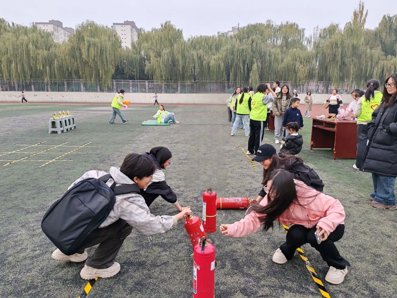 11月9日下午,消防主题游戏互动在田径场火热进行。同学们被四个精心设计的游戏深深吸引,纷纷参与其中。“眼疾手快”锻炼同学们在紧急情况下的迅速反应能力,“燃火自净”中体验身着火焰进行自我扑救的正确方式,“争分夺秒”接力模拟消防员英勇救灾,“方向挑战”模拟火场混乱中寻找准确逃生方向,每一刻都充满了刺激与挑战。