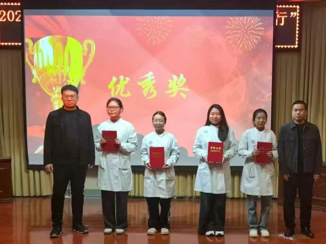 临床医学系甄吉祥老师为二等奖获得者72301班王景文、72301班任钰泽、62311班王梦茹颁发获奖证书