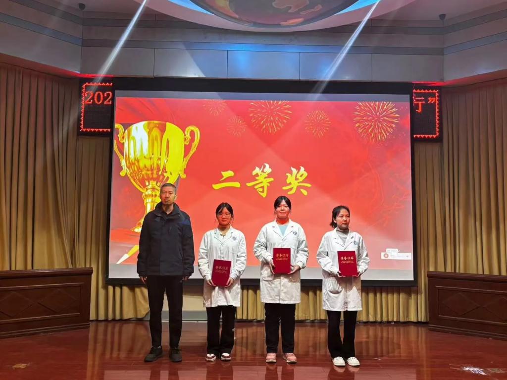 临床医学系赵敦老师为二等奖获得者172302班崔安琪、72203班安妮、202301班范佳蓉颁发获奖证书
