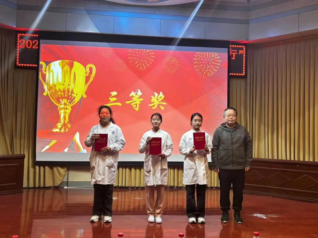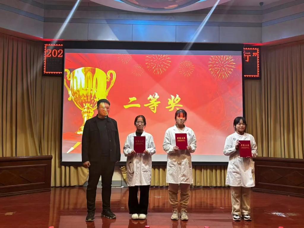 临床医学系郭全虎老师为一等奖获得者222301班贺如意、222402班刘宇薇、52401班任安月颁发获奖证书