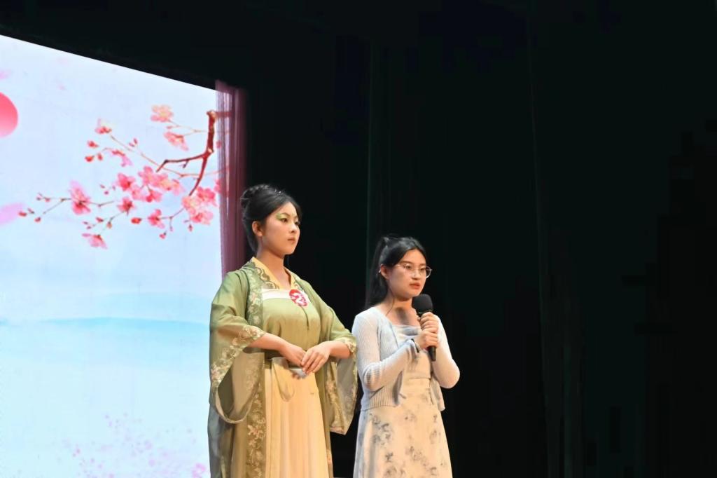 D舞社团带来舞蹈《苏幕遮》,为本次比赛拉开序幕。接着,主持人详细介绍了比赛规则。参赛选手们以真人为模特,紧扣活动主题进行妆容创作,运用精湛娴熟的化妆技能进行形象改造,为模特塑造了精致大方、各具特色的古风妆容。在参赛选手化妆的同时,舞台上悠扬婉转的笛声和婉转动听的音乐节目不断上演,让观众感受到传统文化的独特魅力,也为模特蜕变的过程增添了一道道靓丽风景。