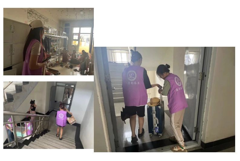 各系部分团委组织学生干部、党员、团员等成立志愿服务队,在本系部毕业生公寓楼下相应区域分别设置志愿服务工作站,为毕业生提供行李搬运、物品整理及装车等服务,同时为等候的毕业生家长提供热心且周到的帮助,保障每位毕业生都能轻松愉悦地离校。