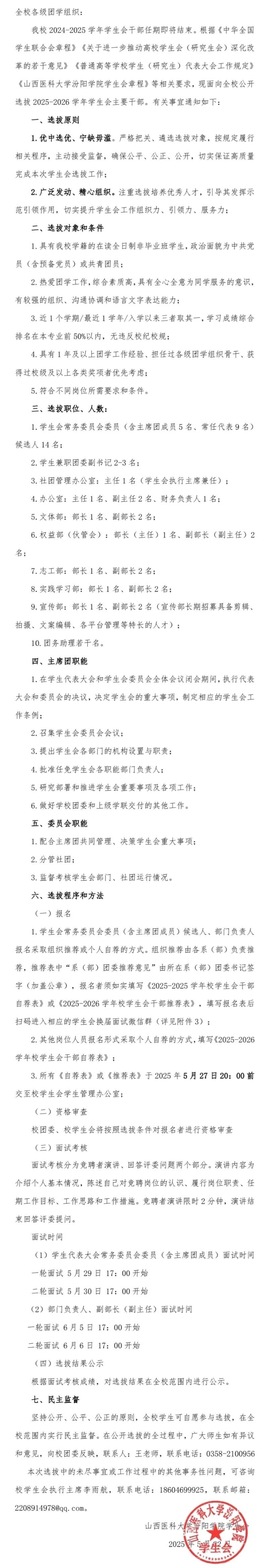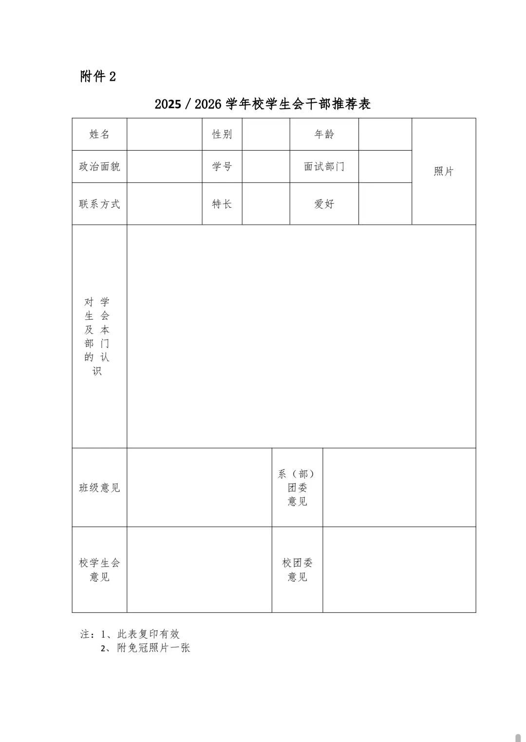 关于推荐选拔2025-2026学年学生会主要干部的通知