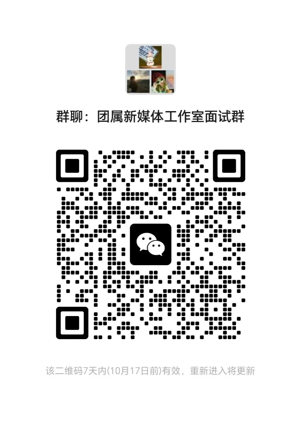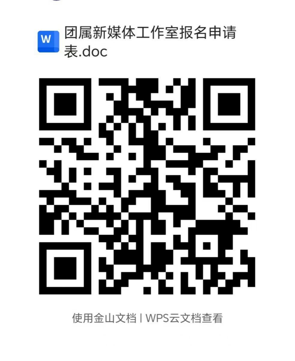1.报名:2025 年 10 月 17 日 12 点前,扫描下方二维码进群并打印填写《团属新媒体工作室报名申请表》;