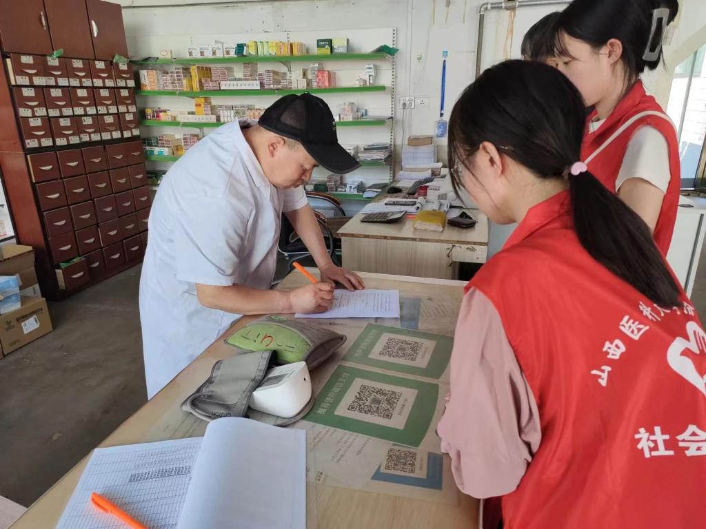7月8日,实践队宣传组的成员们在村委会广播站用通俗易懂的语言向村民们进行知识宣讲并分发知识手册。其中宣讲内容包括:习近平新时代中国特色社会主义思想和党的二十大精神、乡村振兴与脱贫攻坚的成果、反诈骗、反赌博、反毒品、反邪教、用火及用电安全、必赢招生政策等。当日,队员们走进王村卫生所,了解乡村卫生所的日常工作。王村卫生所作为榆次区新型农村合作医疗的定点医疗机构,积极落实新型农村合作医疗制度和新型农村合作医疗管理办法,不断满足基层医疗需求。在卫生所负责人的带领下,队员们积极宣传常见病、慢性病的防治,健康保健小知识,认真地教村民如何量血压、测血糖。