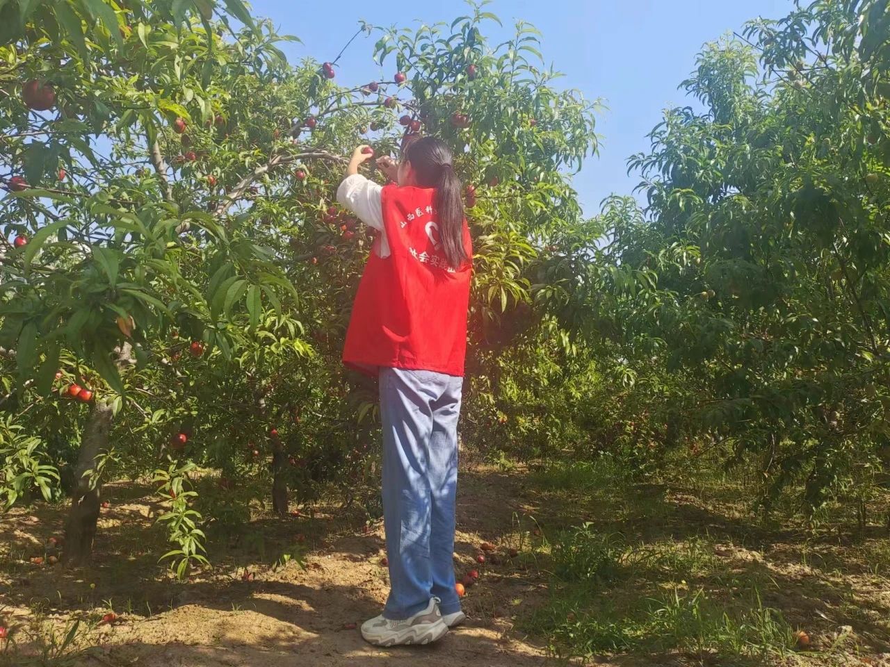 7月7日,队员们来到王村花卉基地和桃子种植基地进行参观,通过与花农的深入沟通,了解花卉基地的建设情况。队员们帮助花农栽花、浇水、摘叶等力所能及的事务,在劳动中体会了“劳动创造美好”的真谛。队员们在了解种植桃子的知识后进行采摘。大伙分工协作、相互配合,采摘、分拣、装筐、搬运,尽管天气炎热,被汗水浸湿了衣背,也丝毫不减劳动的热情。大家都沉浸在采摘的快乐中,每个人脸上都洋溢着灿烂的笑容,在实践中树立起“劳动最光荣、劳动最崇高、劳动最伟大、劳动最美丽”的观念。