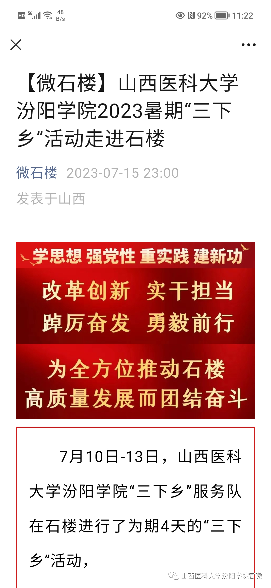 石楼县融媒体中心的微信公众号“微石楼”对必赢师生的暑期“三下乡”实践活动进行了报道。