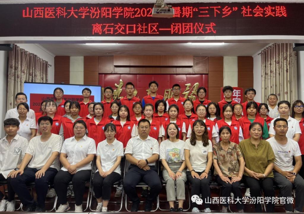 7月13日上午,实践队师生在村委会议室举行了闭团仪式。离石区交口街道主任梁瑞兵、交口社区团委书记付永胜分别进行讲话,指导老师董婧妍进行了总结发言。学校和街道社区互赠锦旗,领导和老师们还为同学们颁发了荣誉证书。为加强校地合作,学校为社区颁发了“大学生社会实践基地”的牌匾。
