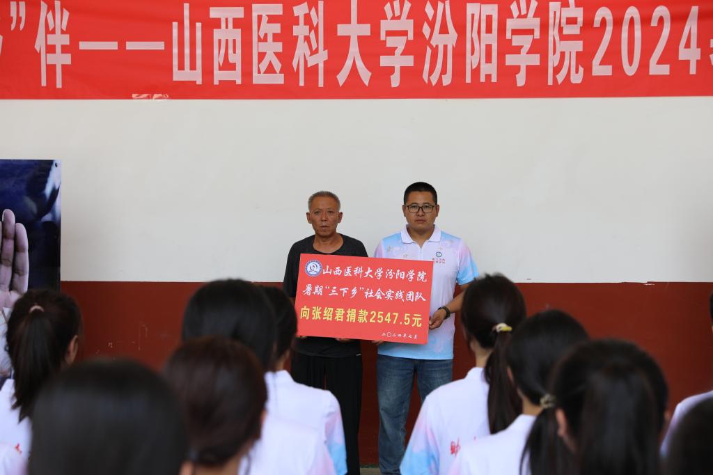 在罗村,队员们通过村干部了解到当地一位13岁的中学生不幸罹患恶性脑肿瘤,正在北京天坛医院接受治疗,手术费用高昂,家庭贫困无力承担,师生们纷纷献爱心,短短一个小时筹集善款2547.5元,并及时转交到了病人家属手中,充分展现了汾阳学院师生的仁爱之心和担当精神。