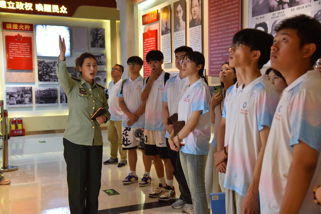 红军东征纪念馆坐落于石楼县,是一座以全面反映红军东征山西、抗日救亡革命历程的纪念馆,是全国爱国主义教育示范基地、国家级国防教育基地,山西省爱国主义教育基地、革命传统教育基地、党史教育基地、思想政治教育基地等。为真切感受那段烽火岁月的辉煌历程,更加深刻地认识到红色政权来之不易、新中国来之不易、中国特色社会主义来之不易,实践团全体师生参观了石楼县红军东征纪念馆。一幅幅老旧的相片,一件件沧桑的革命文物无声地诉说着那段光荣的革命史诗,大家边看边听工作人员的讲解,接受革命精神洗礼。在纪念馆外的党史时间轴场地,必赢思政部教师张晓丽给同学们上了一堂现场思政课,不仅让同学们重温了党的历史,更让同学们感受到了百年大党带领中国人民历经艰辛、砥砺前行写下了由弱到强的人间史诗。