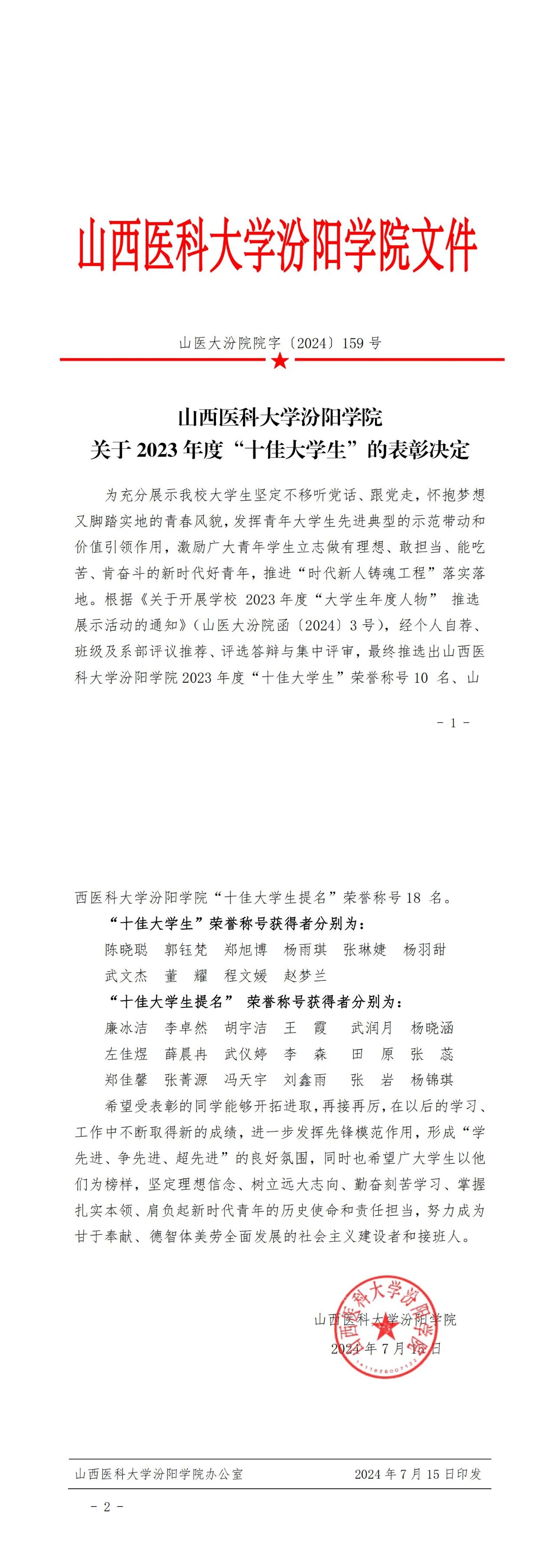 培根铸魂•榜样引领 | 2023 年度学校“十佳大学生”的表彰决定