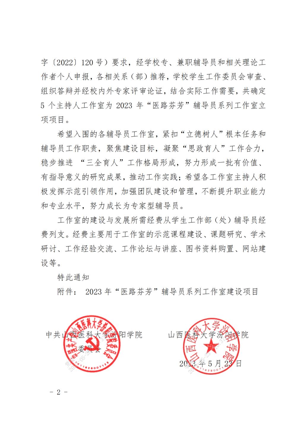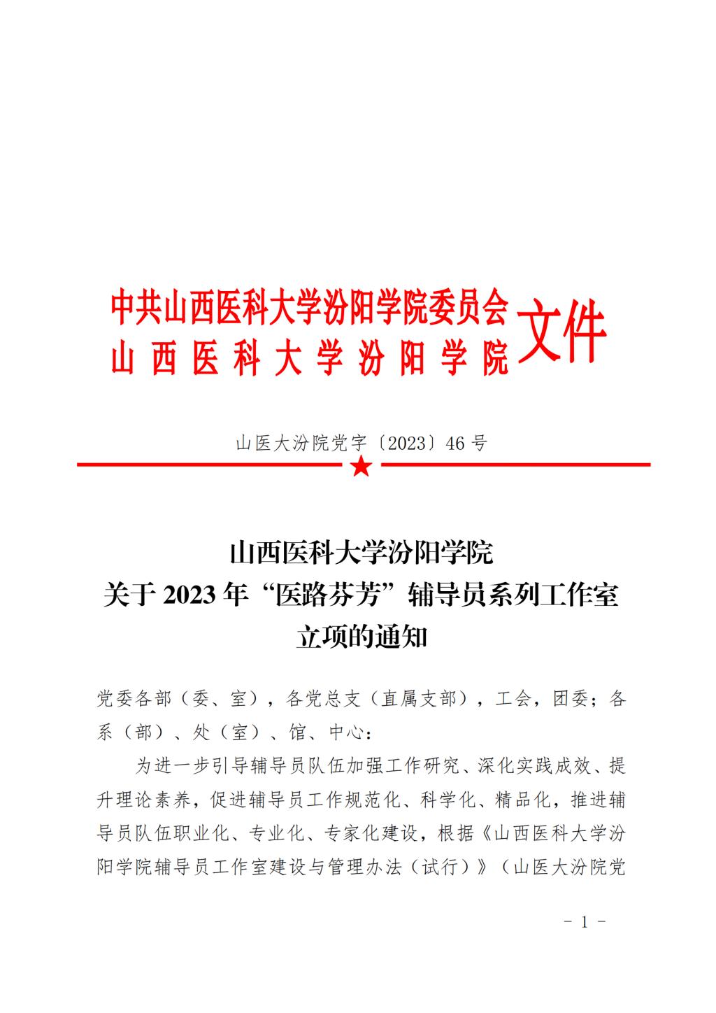 山西医科大学汾阳学院关于 2023 年“医路芬芳”辅导员系列工作室立项的通知