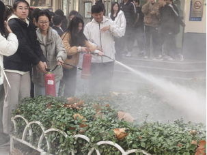 本次活动有三个项目,分别是消防安全知识讲解、学习如何使用灭火器、逃生应急演练。首先,梁庆刚老师做了消防安全讲座并讲解了灭火器的使用方法,通过对真实案例的剖析,说明了火灾的无情和危害,使抽象的消防知识变得易于理解和接受,师生深刻认识到消防安全的重要性和紧迫性。然后,梁老师指导学生们进行灭火器的实践操作,通过亲身体会,加深了同学们的印象。最后,在六号公寓进行逃生应急演练,同学们紧捂口鼻,弯腰有序跑出公寓。此次演练,紧张又有序,沉着冷静,认真投入,整个演练过程顺利完成。