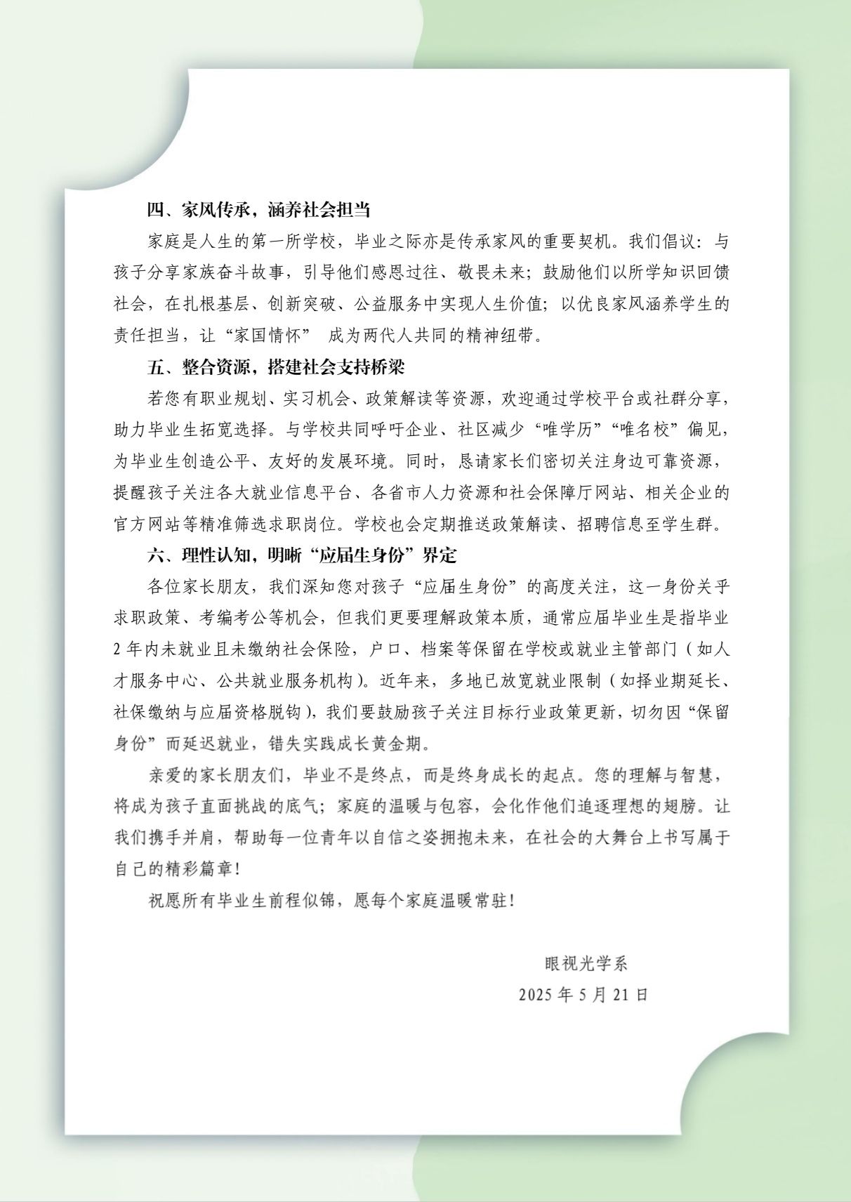 家校同心,共促就业 ---致 2025 届毕业生家庭的一封倡议书