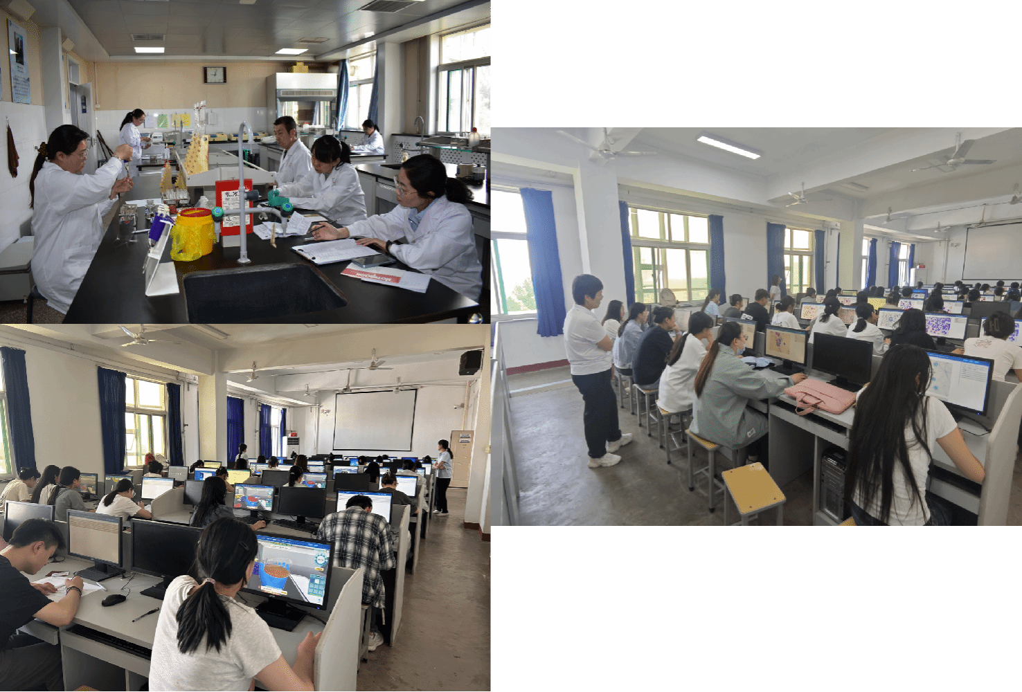 上午8时,大赛分别在诚明楼医学检验系实验室和聚成楼计算机教室进行,校党委委员、副院长陈振文和医学检验系党政领导现场观摩。比赛中,各组评委老师对照评分标准严肃认真评判。选手们操作准确专业,展现了同学们的专业知识积累、实验操作能力及良好的比赛心态。